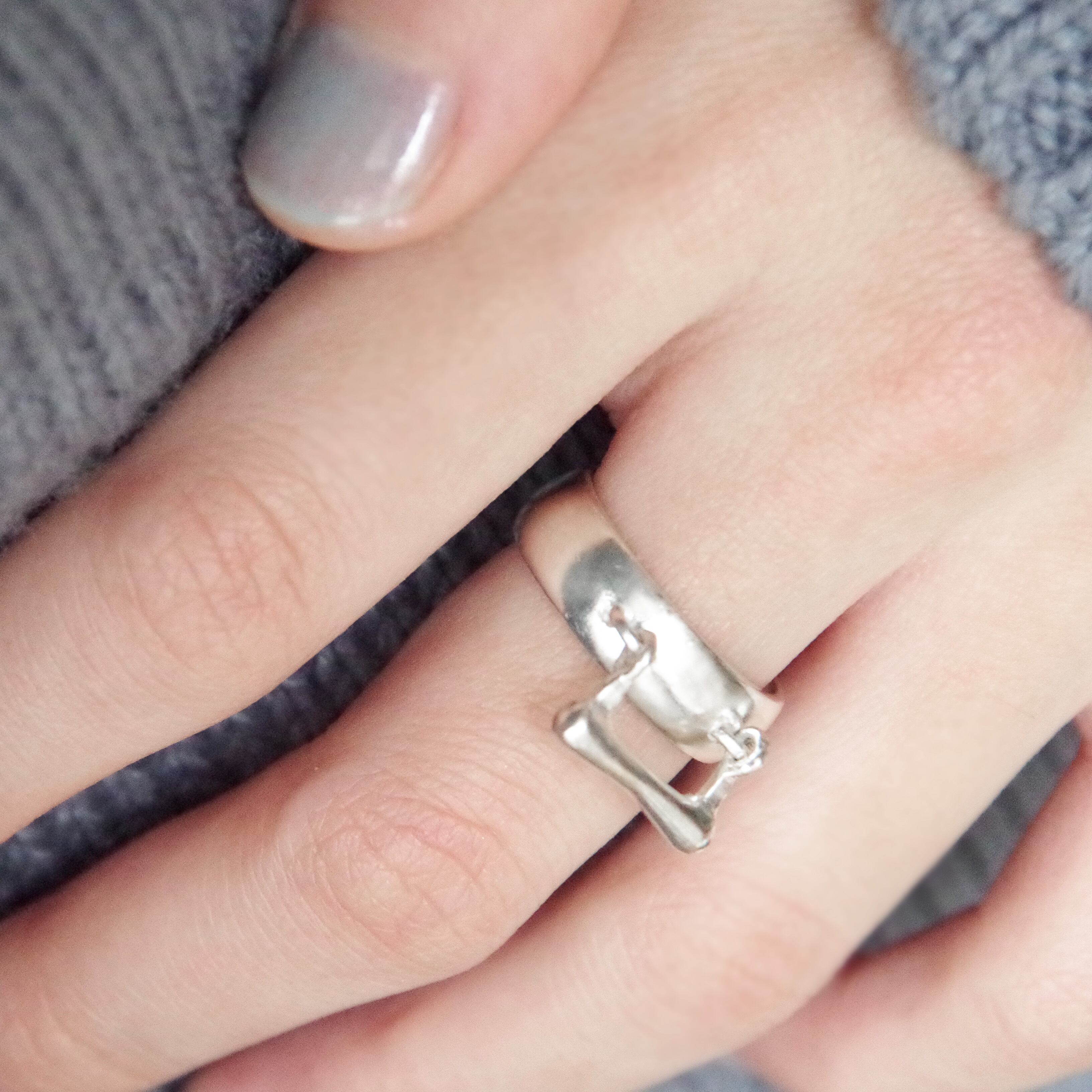 リングを動かすと、取っ手が揺れて、小さくカチャカチャと音を立てます。